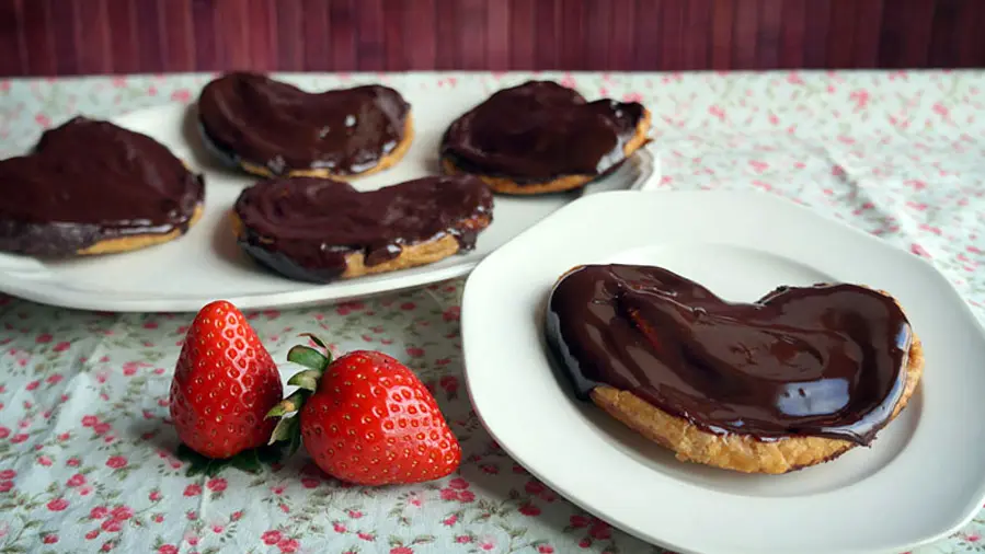 Con una cuchara, ve echando el chocolate para cubrir la parte de arriba de las palmeritas. Mete a la nevera hasta que se enfríe bien el chocolate.